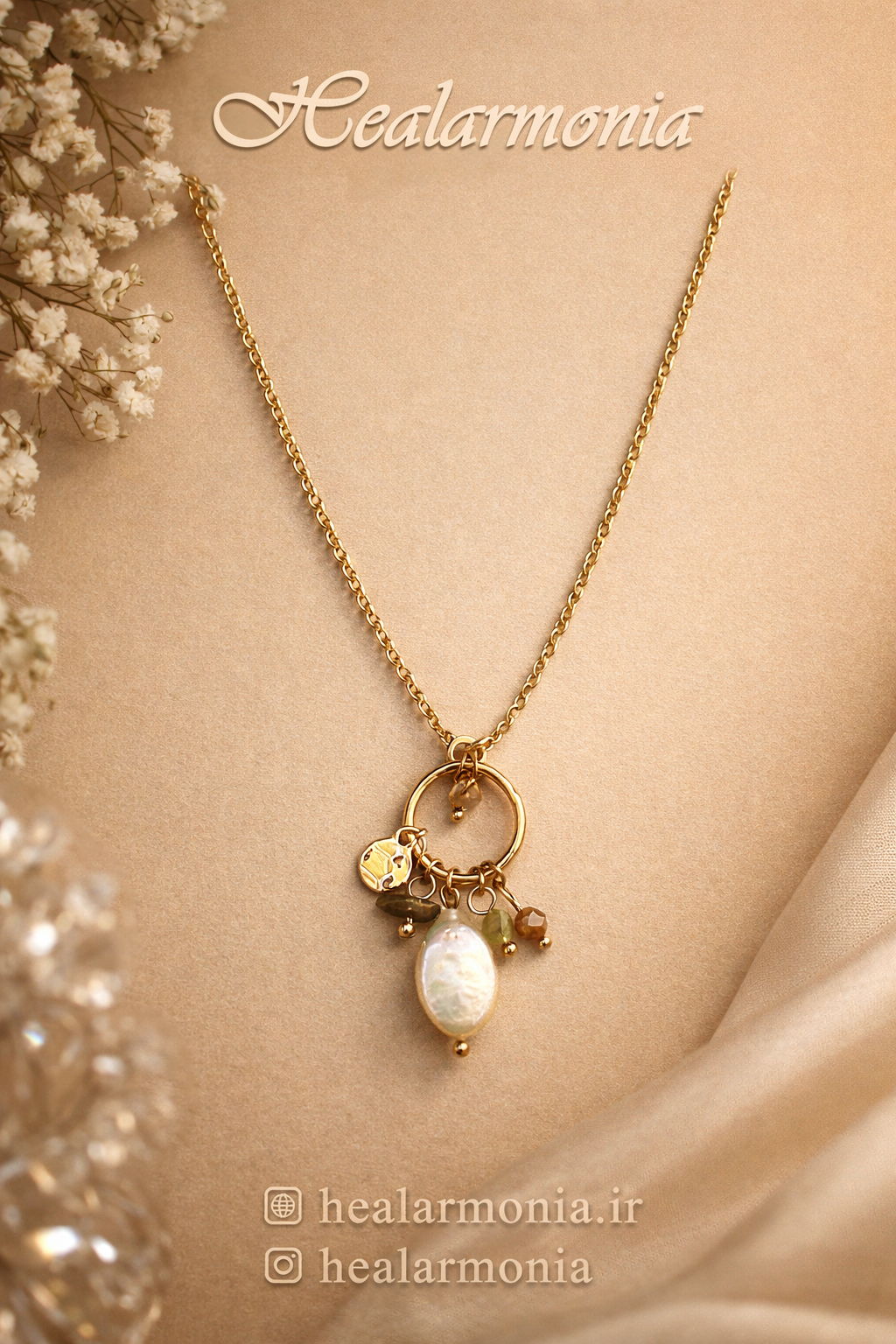 گردنبند آویزدار سنگی و مروارید پرورشی فشن برند تاش - وارداتی