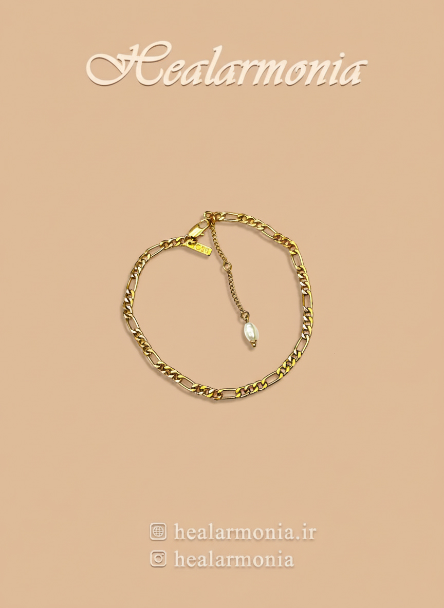 پابند طلایی طرح کارتیه با آویز مروارید پرورشی برند تاش - وارداتی