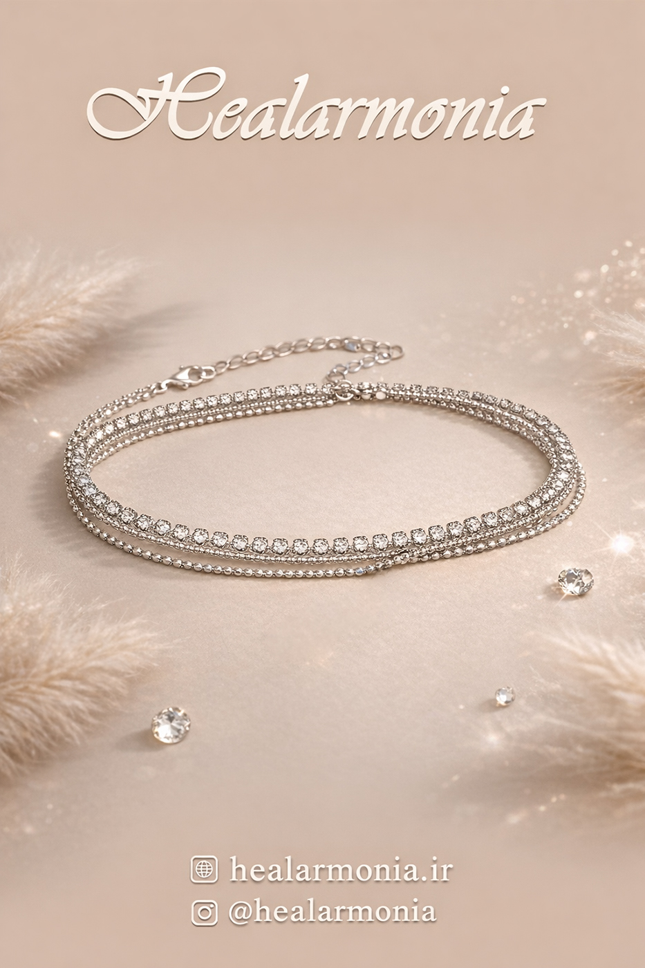 پابند فشن دو لاین زنجیری و نگینی با روکش نقره برند تاش - وارداتی