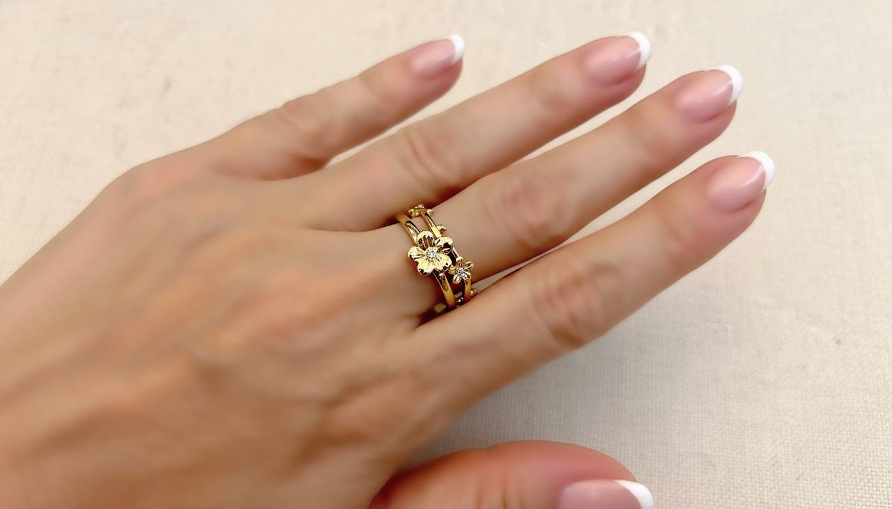 طراحی منحصر به فرد:این انگشتر با طراحی دو انگشتر مجزا با طرح گل و برگ و نگینهای درخشان، ظاهری بسیار شیک و لوکس دارد و جلوه ای خاص به دستان شما می بخشد. طراحی آن، مناسب برای استایلهای مختلف،از برندهایترند اروپایی و دارای بارکد تحت لیسانس آلمان،مخصوص افرادی که دنبال خاصترینها هستند.