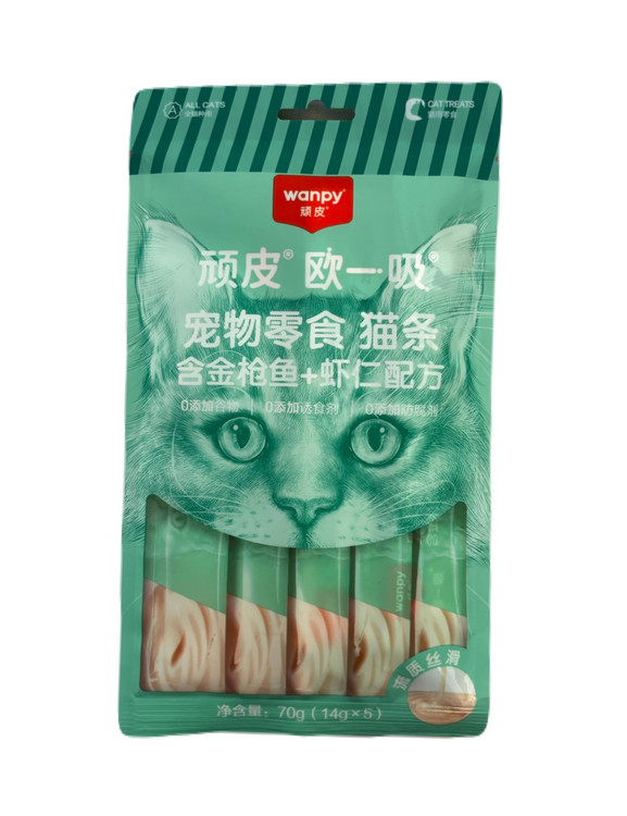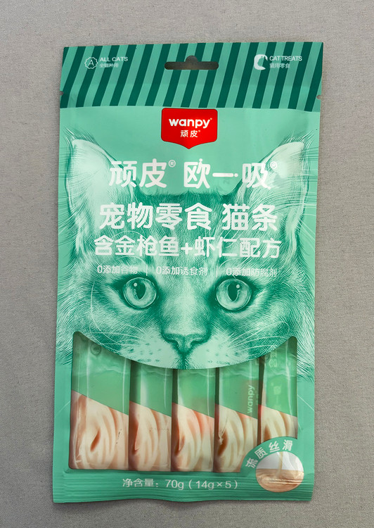 Wanpy Cat Creamy Treats Tuna & Shrimp یک تشویقی لیسیدنی و خوشطعم برای گربههای دوستداشتنی شماست که با ترکیب لذیذ ماهی تن و میگو تهیه شده است. این بستنی گربه با بافت نرم و کرمی، انتخابی عالی برای گربههای بدغذا بوده و میتواند به افزایش اشتها و ایجاد تنوع در رژیم غذایی آنها کمک کند.
