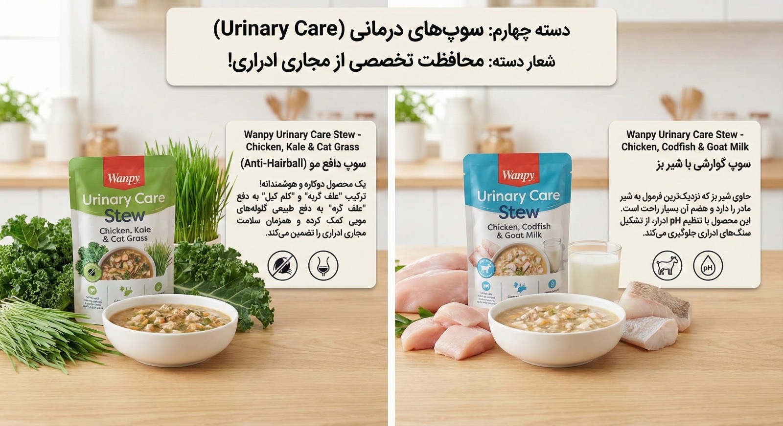دستهبندی: پت شاپوزن: 90 گرمطعم: پودینگ گربه ونپی مدل سلامت مجاری ادراری با طعم مرغ، ماهی کاد و شیر بز - وزن 90 گرم