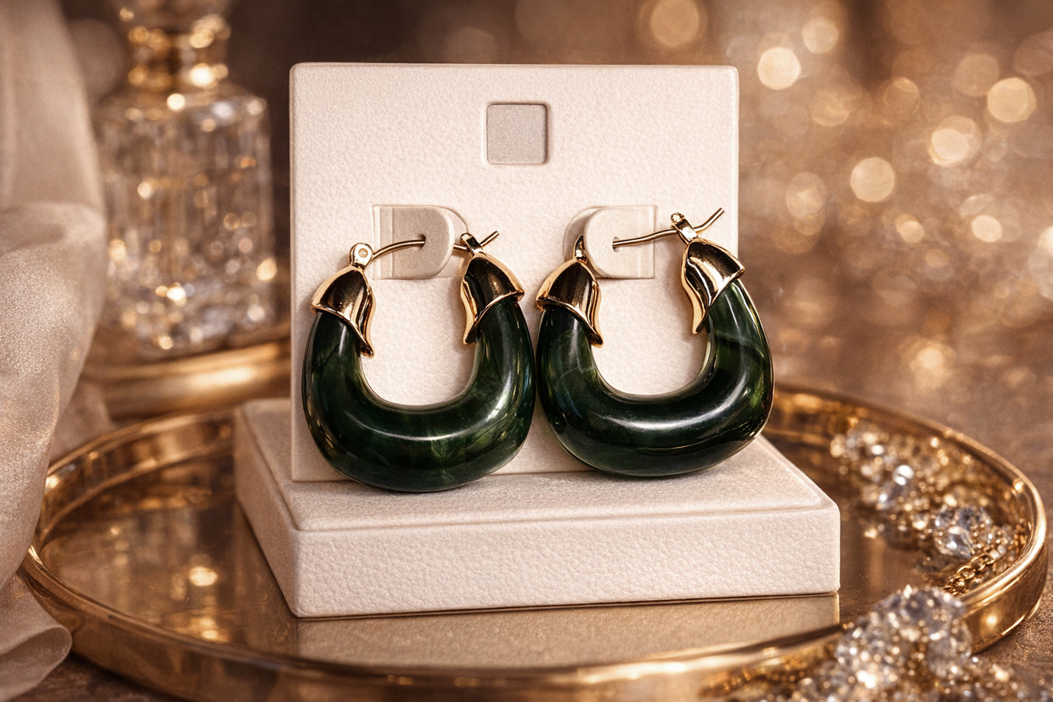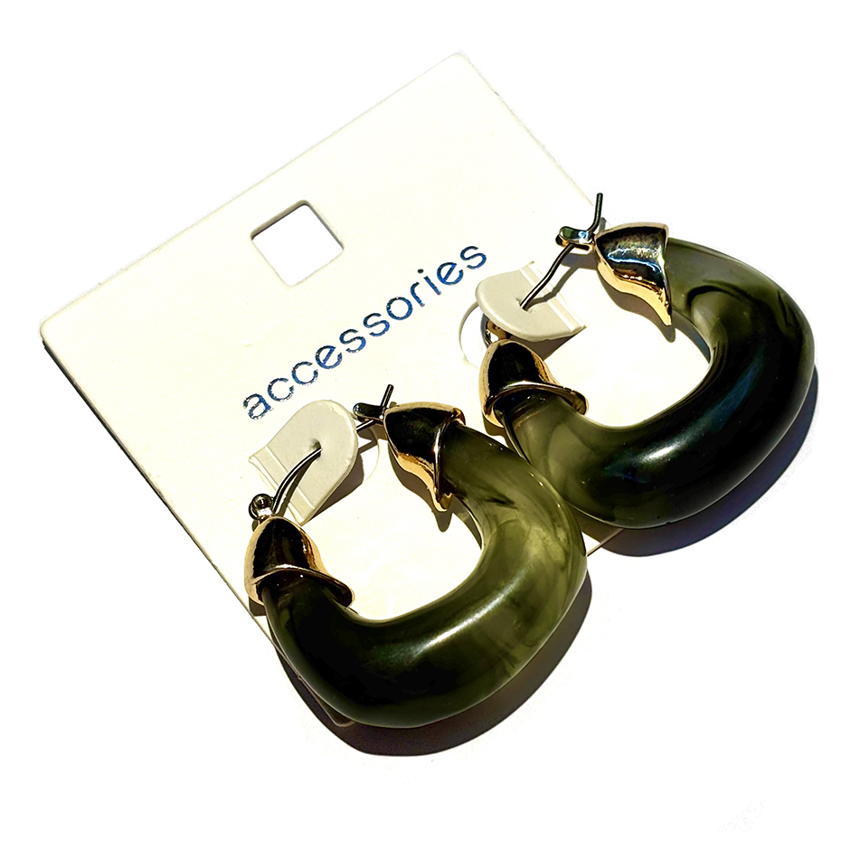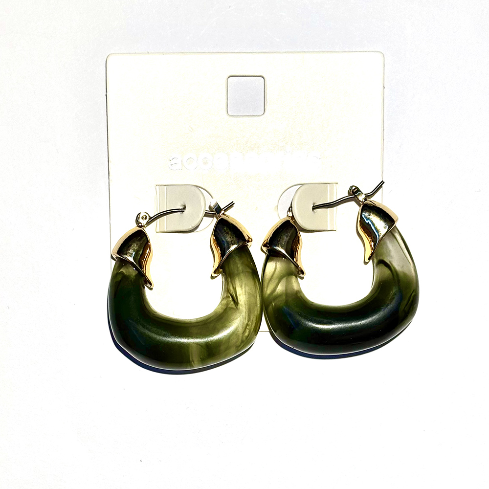 گوشواره حلقه ای رزینی طرح مرمر یشمی فشن - وارداتی