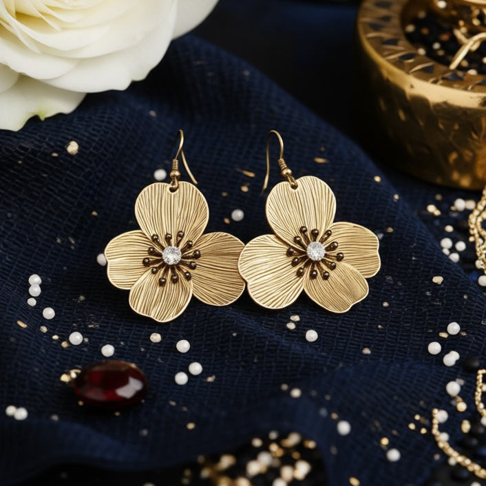 گوشواره طرح گل پینترستی طلایی برند I am - وارداتی
