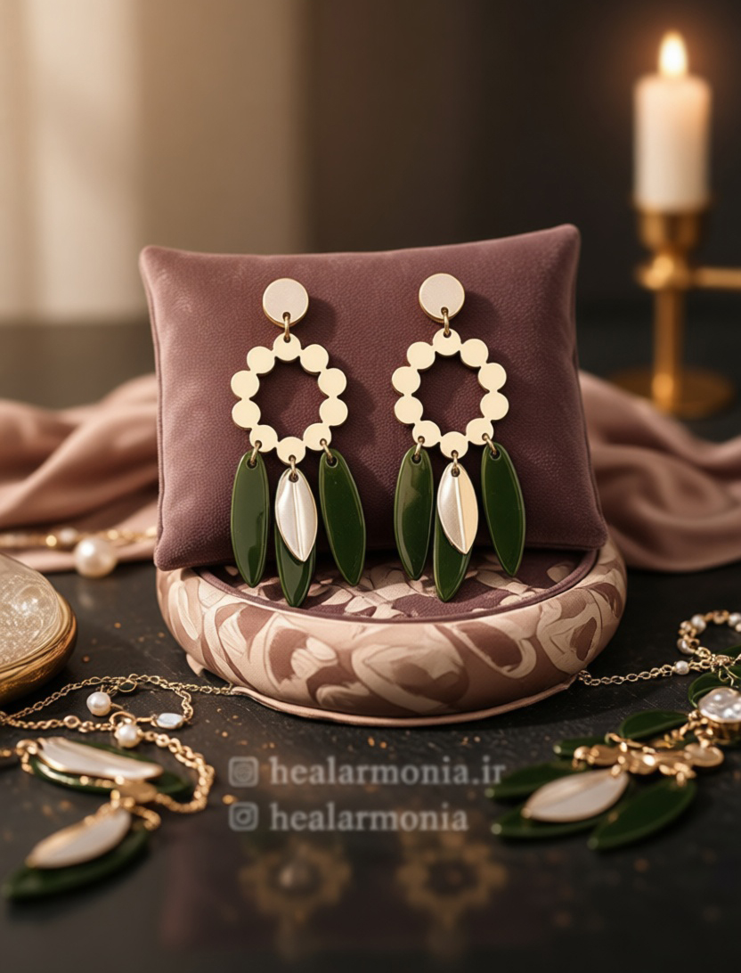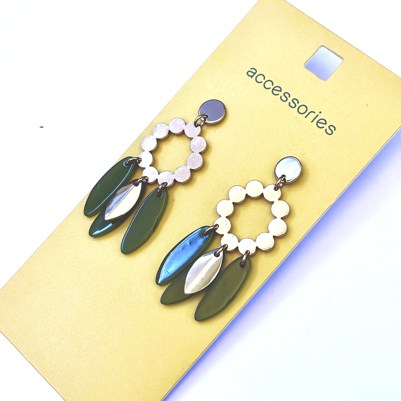 گوشواره آویزی پینترستی طلایی و سبز برند اکسسورایز - وارداتی