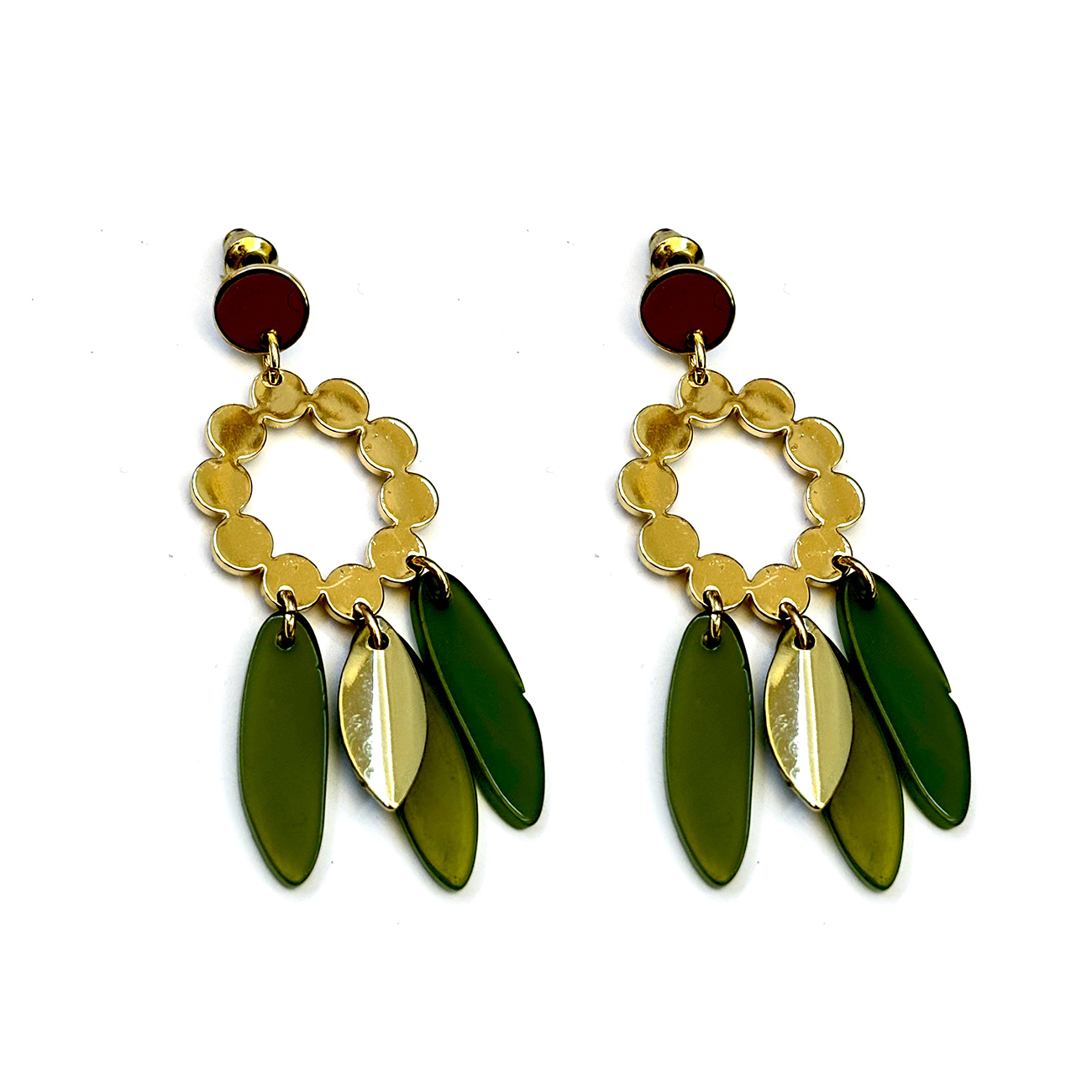 Gold and green Pinterest dangle earrings