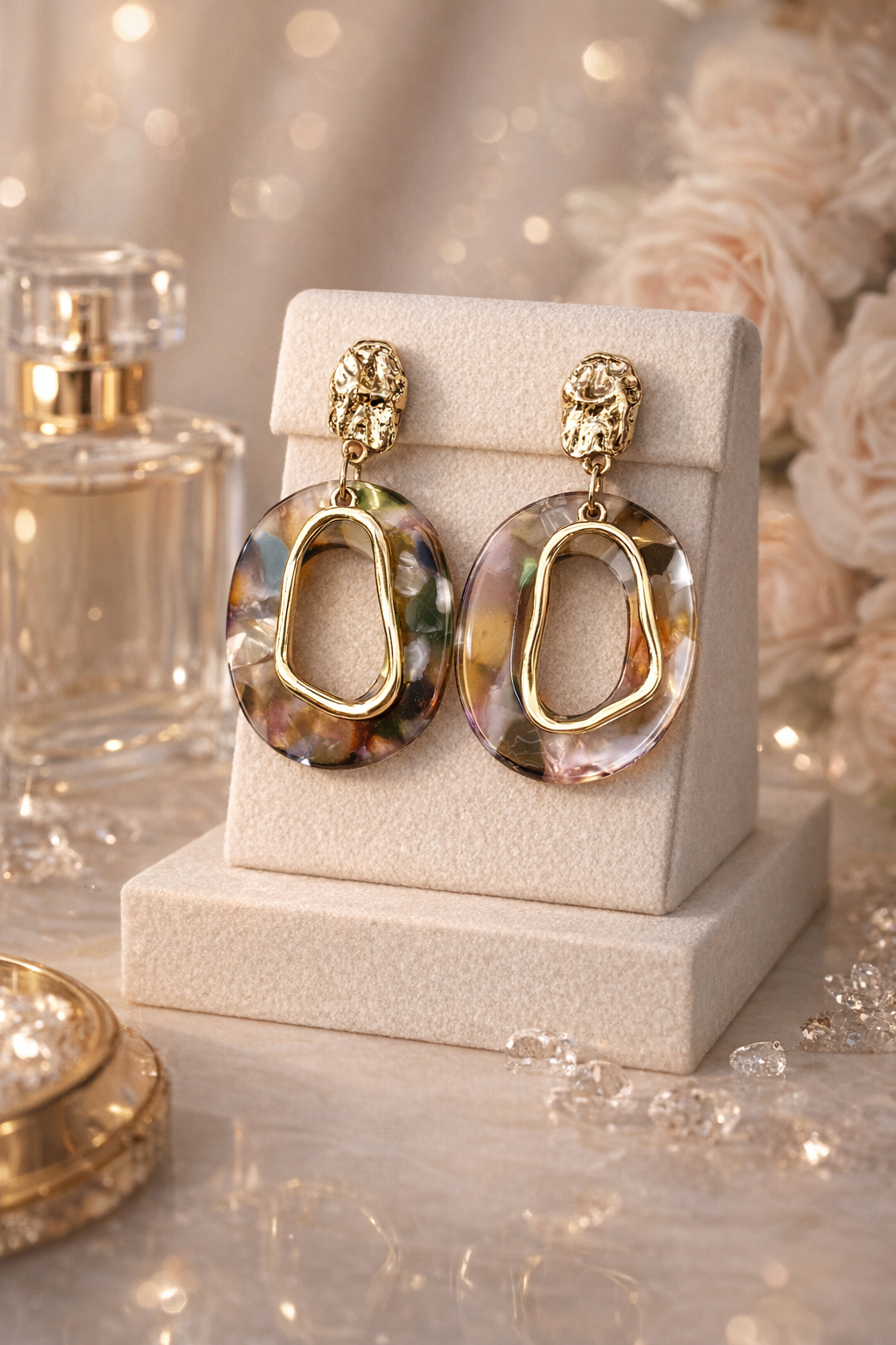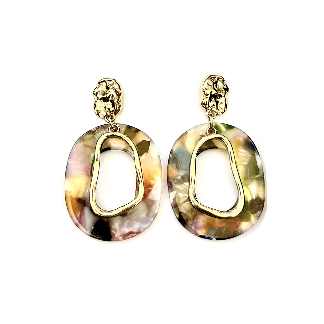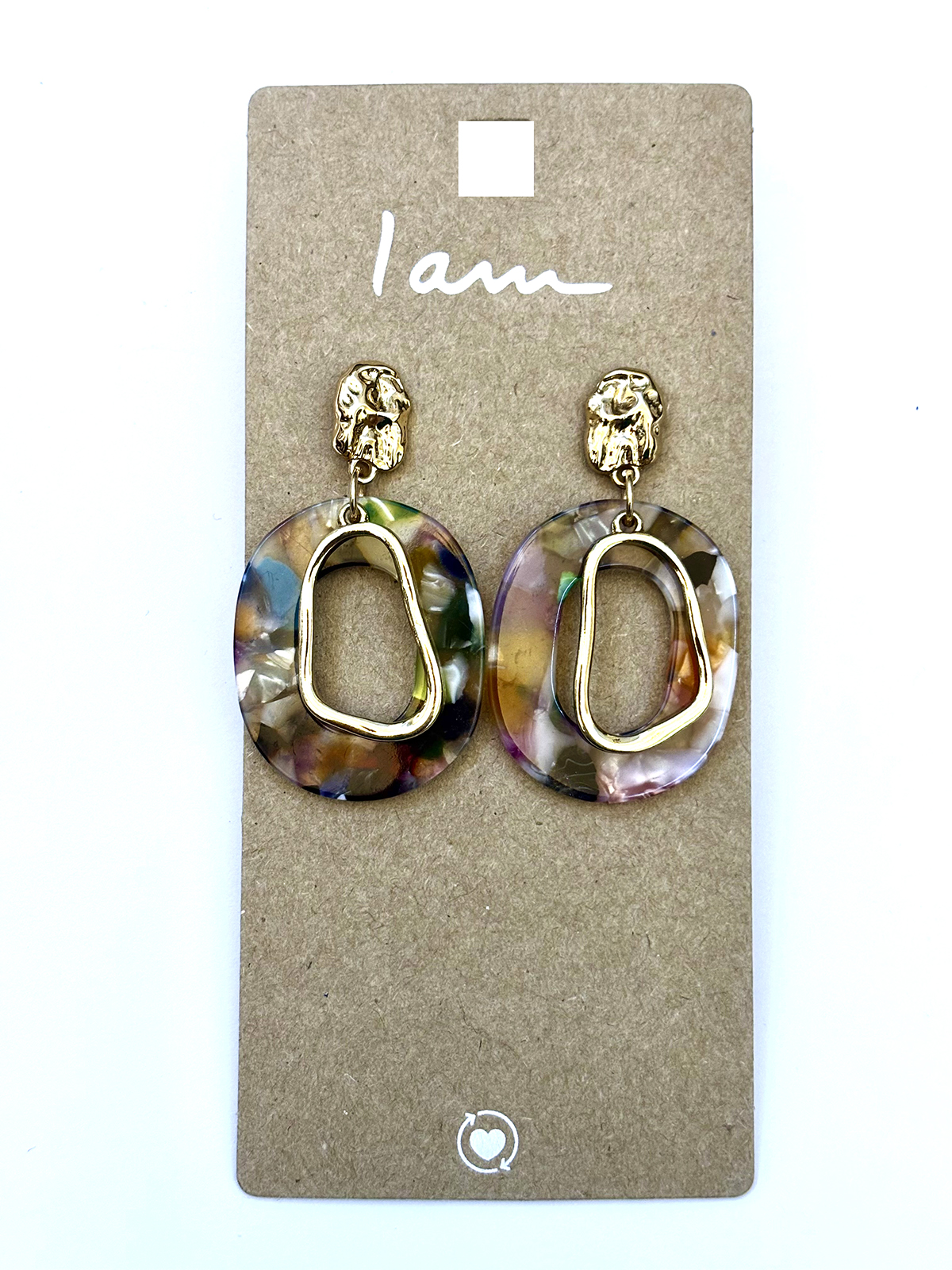 گوشواره دفرمه فشن، رزینی رنگارنگ طرح سنگ برند I am - وارداتی