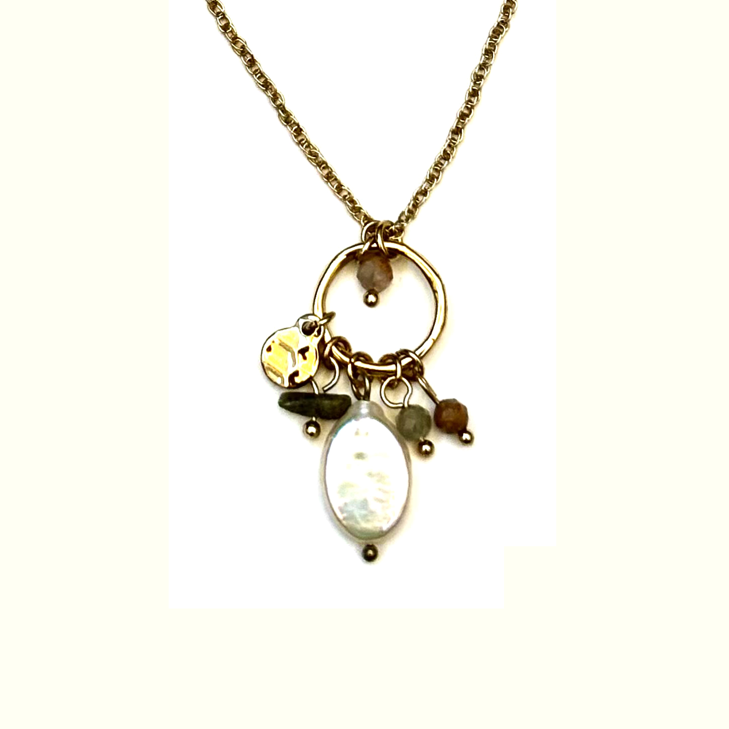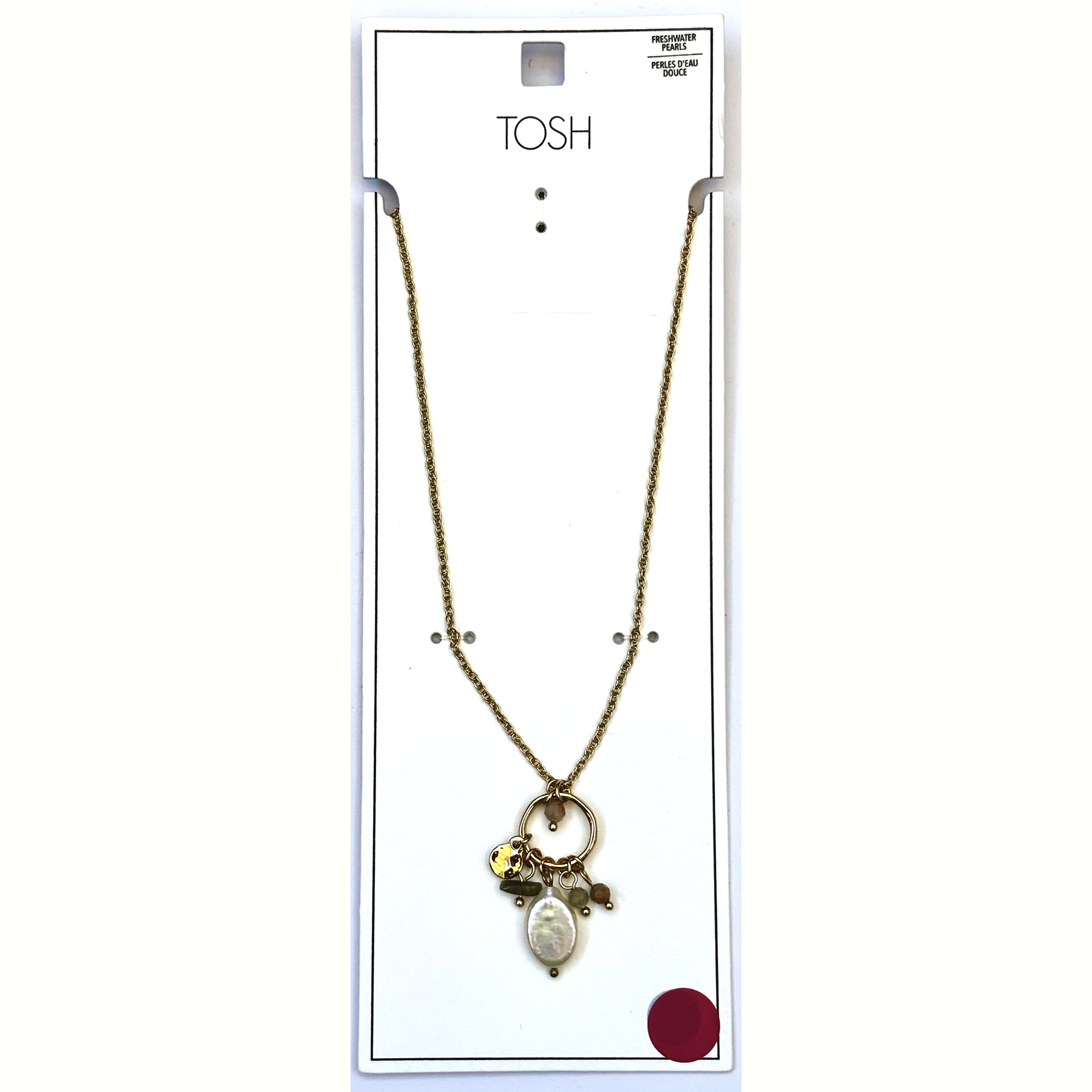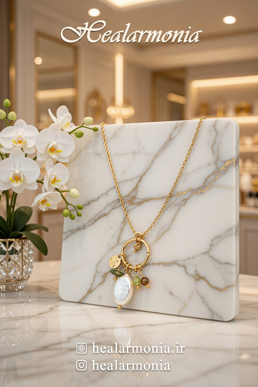گردنبند آویزدار سنگی و مروارید پرورشی فشن برند تاش - وارداتی