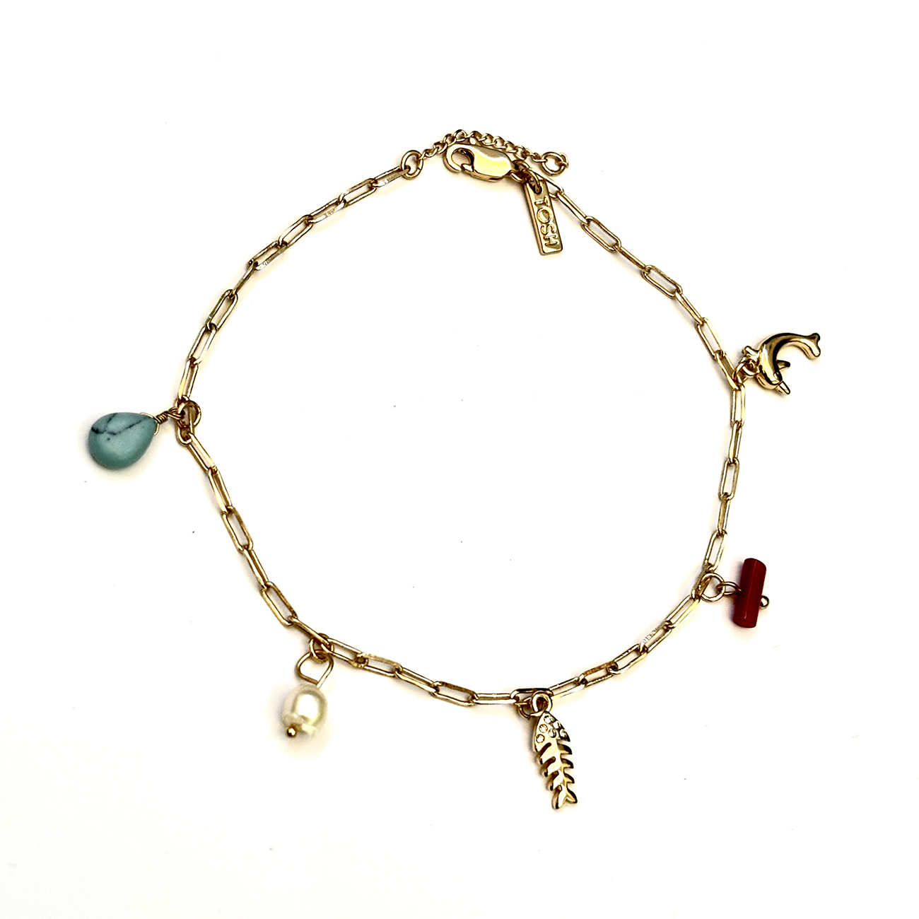 پابند طلایی آویز فشن با مروارید آب شیرین اصل از برند تاش - وارداتی