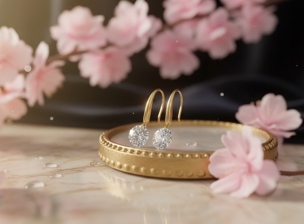گوشواره آویزی تک نگین الماسی طرح سواروسکی طلایی
