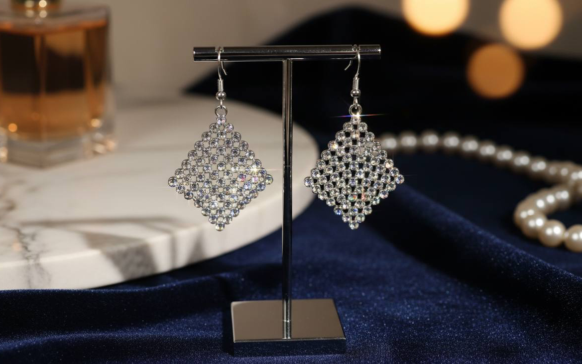 - طراحی منحصر به فرد: این گوشواره با طراحی لوزی انعطاف پذیر الماسشکل و استفاده از کریستالهای درخشان، ظاهری شیک و لوکس دارد و مناسب برای استایلهای مختلف، از برندهای ترند اروپایی و دارای بارکد تحت لیسانس آلمان، مخصوص افرادی که دنبال خاصترینها هستند.